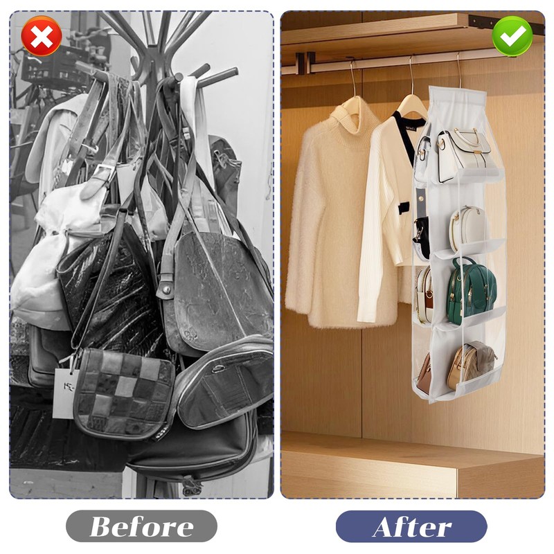 - 【Ample Storage Capacity】 Each organizer includes 8 spacious pockets (11.6” x 9.5” x 6.3”), perfect for medium-sized purses, handbags, scarves, shoes, and accessories.