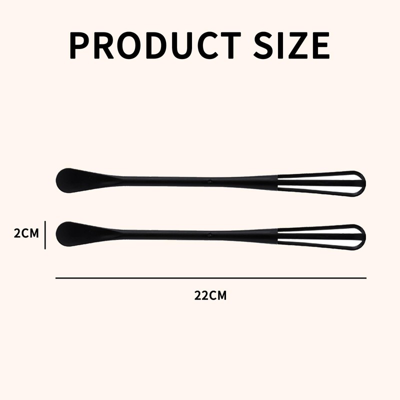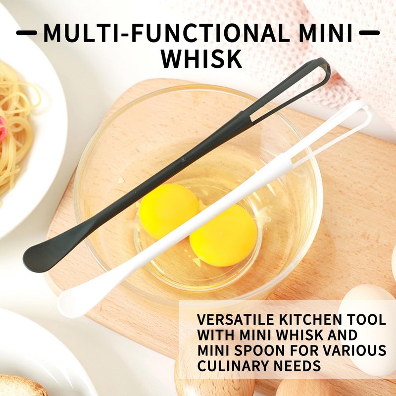 Elevate your kitchen experience with the multi-functional mini whisk – the ultimate tool for versatile and efficient cooking. With a mini whisk on 1 end and a mini spoon on the other, this kitchen essential is perfect for blending dry ingredients, mixing sauces, and creating delightful dishes like hot chocolates, eggs, coffee, and more.Crafted from food-grade PP material, Offers flexibility and durability, standing out from traditional stainless steel mini whisks. Rust-free and effortlessly blending sauces, this mini whisk's popular size ensures optimal whipping performance in the kitchen, making it a must-have for any cooking enthusiast.The long handle of multi-functional small whisk is designed with your comfort in mind. Its ergonomic grip reduces wrist strain and pressure, making egg beating and other stirring tasks more effortless and enjoyable. Experience the ease of use that comes with this thoughtfully designed kitchen tool.Efficient storage is a breeze with tiny whisk. Its compact and lightweight design makes it exceptionally convenient to store, saving space in your kitchen and creating a more streamlined cooking environment with less clutter.Rest assured in the quality of products with our Brand Quality Guarantee. If you encounter any issues, our customer service is ready to assist, promptly sending you a replacement at no additional cost or providing a full refund. Your satisfaction is our top priority. Order now with confidence and enjoy the convenience, durability, and service that brings to your kitchen.