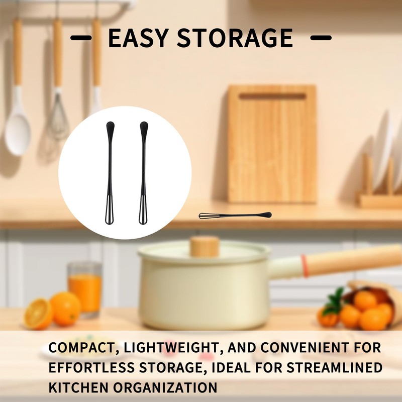 - Compact and Lightweight Storage: Tiny whisk is designed with easy storage in mind. Its extremely compact and lightweight build makes it exceptionally convenient to store, saving space, streamlining your kitchen, and reducing clutter. Keep your kitchen organized with this space-saving essential