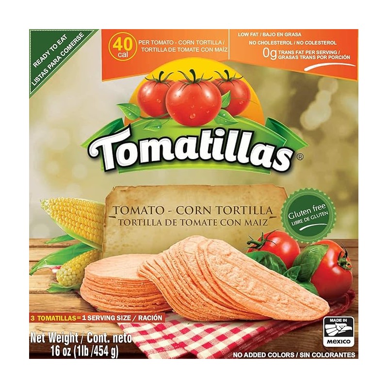 Las tomatillas son tortillas de tomate y maíz, bajas en calorías por lo que 2 tomatillas equivalen a 1 tortilla de maíz. Están hechas con tomate 100% fresco y natural, además de ser bajas en grasa y libres de gluten. ¡No se rompen al doblarlas y tienen un sabor único!