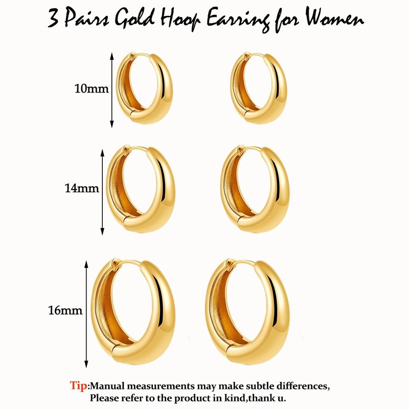 - Fashion Huggie Hoop Earrings Set:A set have three pairs,unique chunky gold hoop earrings with a distinctive design,wear them to make your ears more cute and perfectly slim your face shape,hoop earrings can make a great impression