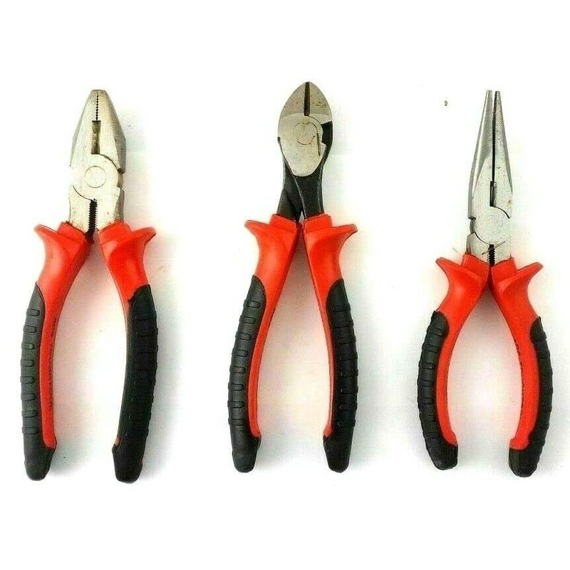 3PC HEAVY DUTY 150mm COMBINATION LONG NOSE SIDE CUTTER CUTTING PLIERS SET.