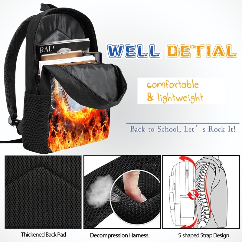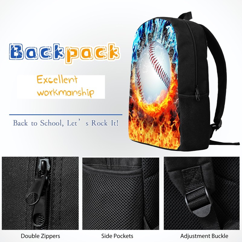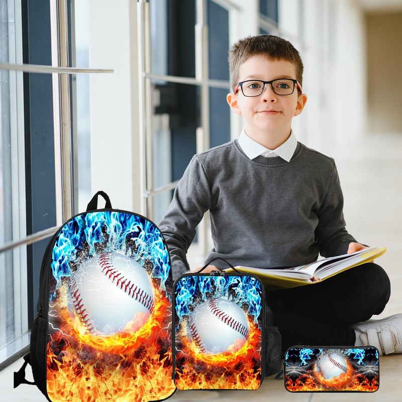 3PCS Baseball Backpack Set for Boys, Lightweight Large Backpack with Lunch Box & Pencil Case, Cool Sport Bookbag for Kids, Back to School Backpacks for Elementary & Middle School - 01