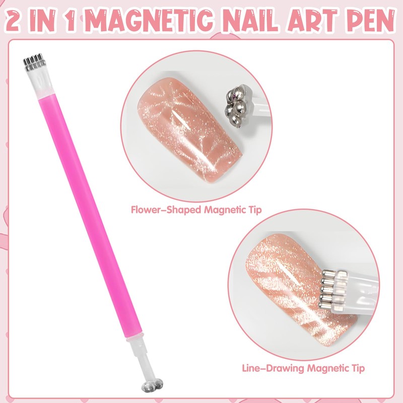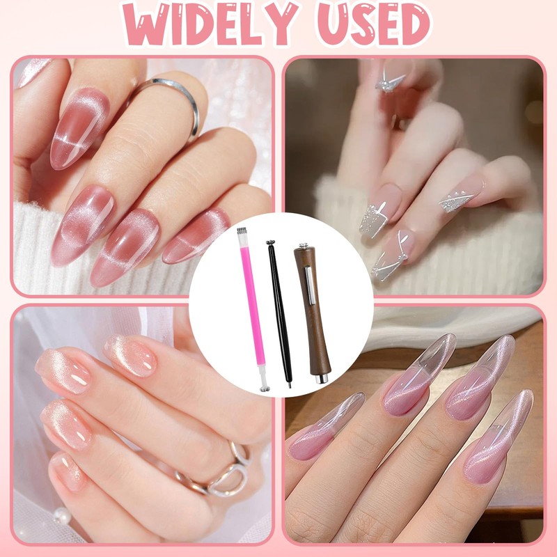 - 【Multifunctional Design】This complete set includes three magnetic tools: a wooden multi-head magnet, a dual-ended black cat eye magnetic pen, and a plum blossom tip magnet. Each tool serves a function—creating floral patterns, fine lines, gradient effects, and classic cat eye looks. Perfectly compatible with all cat eye gel polishes, it offers limitless creativity for nail enthusiasts and technicians alike.
