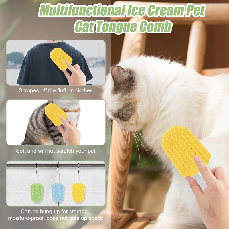 3pcs Cat Tongue Comb, Cat Grooming Brush Cat Brush for Shedding Cute Cat Tongue Brush Cat Hair Brush for Long-Haired Cats Removing Hair Hairballs (Ice Cream Colors)