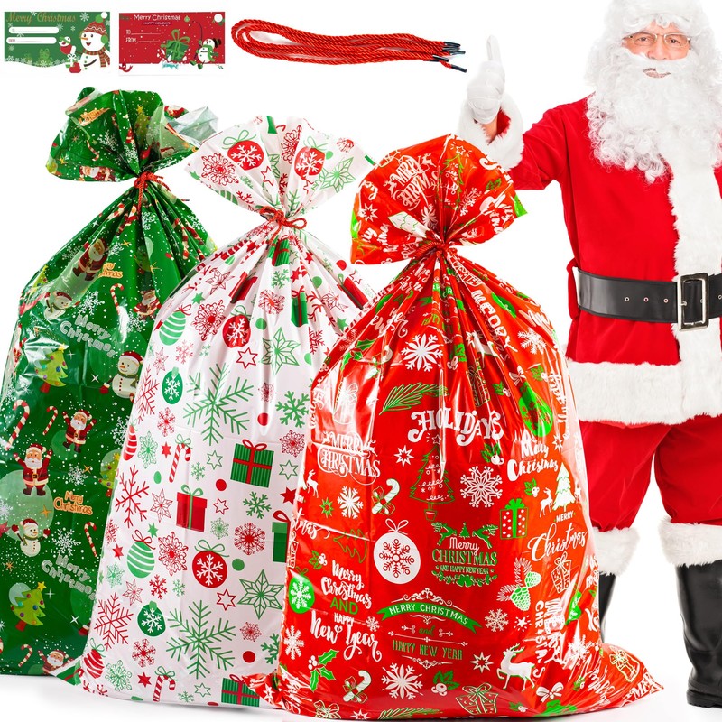 - đăWide applicabilityăChristmas giant goody gift bags is very suitable for use in various occasions, such as family gatherings, corporate activities, school celebrations, etc. It can not only be used as a gift package, but also as part of the Christmas decoration, adding a strong festive atmosphere to the place. Whether it is given to elders, friends or colleagues, this oversized Christmas flat gift bag can convey full sincerity and blessings.