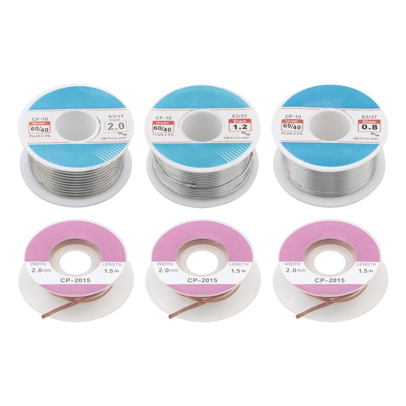 - 100g 0.8mm+100g 1.2mm+100g 2.0mm+3pcs 1.5m desoldering wrie set. Crafted with quality materials, our solder wire does not emit harmful solder fumes during soldering. This ensures a safe working environment and reduces the risk of health hazards.