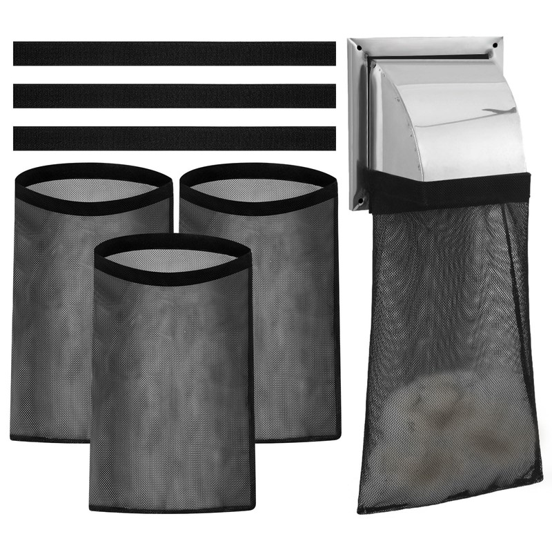 - Value Pack: Outdoor dryer lint trap includes 3 pcs of bags sewn with loop strips and 3 pcs of adhesive hook strips. It is designed to be fit to an approximately 4" diameter dryer vent pipe, vent elbows and dryer vent hoods
