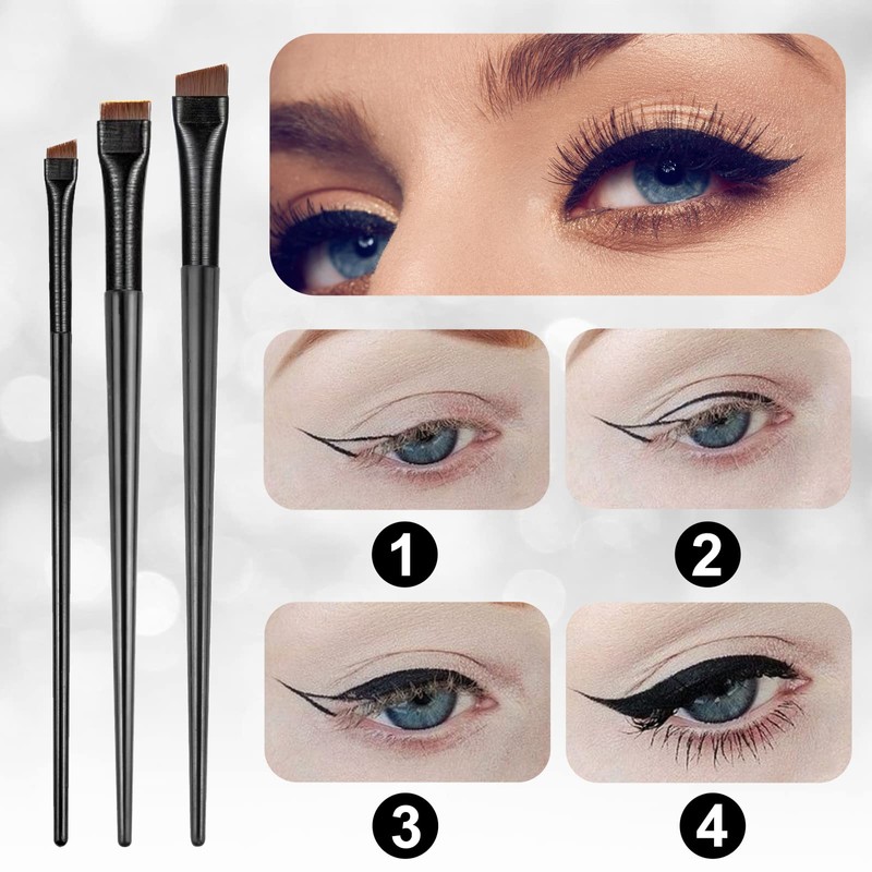 - Eyeliner Brush Kit:You will get 3 pieces professional eyeliner brushes:1pcs large angled eyeliner brush,1 pcs small fine angled eyeliner brush and 1pcs flat eyeliner brush.Our eye makeup brushes are multi-functional, it can not only draw eyeliner, but also can be used as an eyebrows and eyeshadow brush.