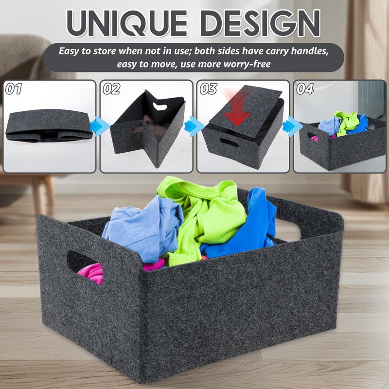 • Foldable and Handle Design: The felt storage basket features foldable design which is easy to store when not in use. Both sides are designed with a handle that allows easy to more and convenient to use