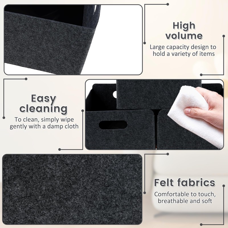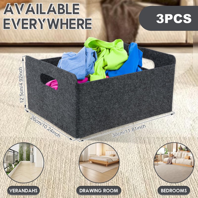 • 3Pcs Set: The package comes with 3 felt storage baskets, sufficient quantity to meet your daily use. Before firstly use, you can iron the felt storage basket to make it firm. It is easy to clean it, gently wipe it with a damp cloth