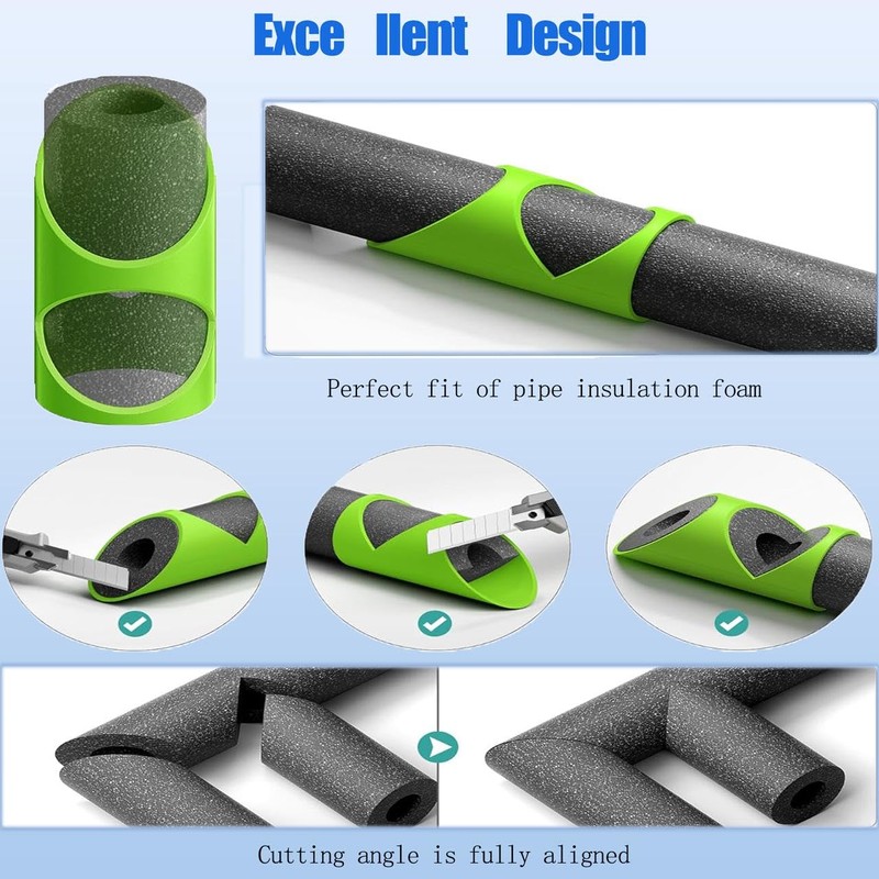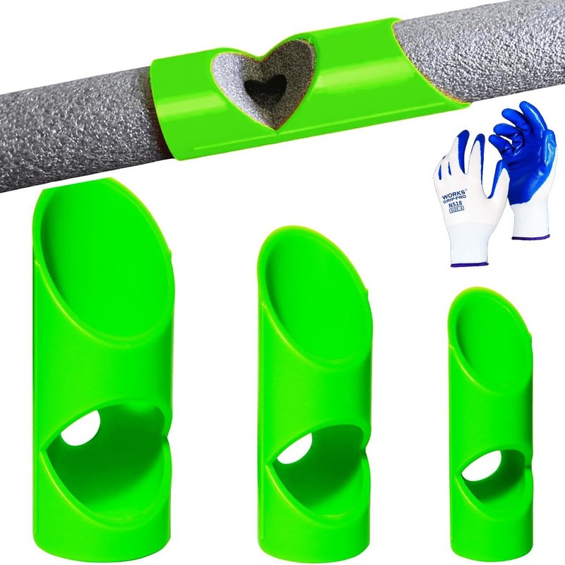 3pcs Foam Pipe Cutter Tool with Precision Cutting Guide - Professional Multi-Functional Insulation Cutting Tool for Foam Tubes, Rubber Pipes, and HVAC Saddle Templates(green)
