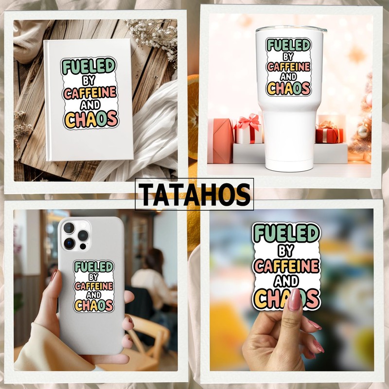 (3Pcs) Fueled by Caffeine and Chaos Stickers Funny Sarcastic Quote Humor Motivational Inspirational Gifts Waterproof Vinyl Decals for Kindle Water Bottle Bumper Car Hard Hat Phone Laptop 3x2.3