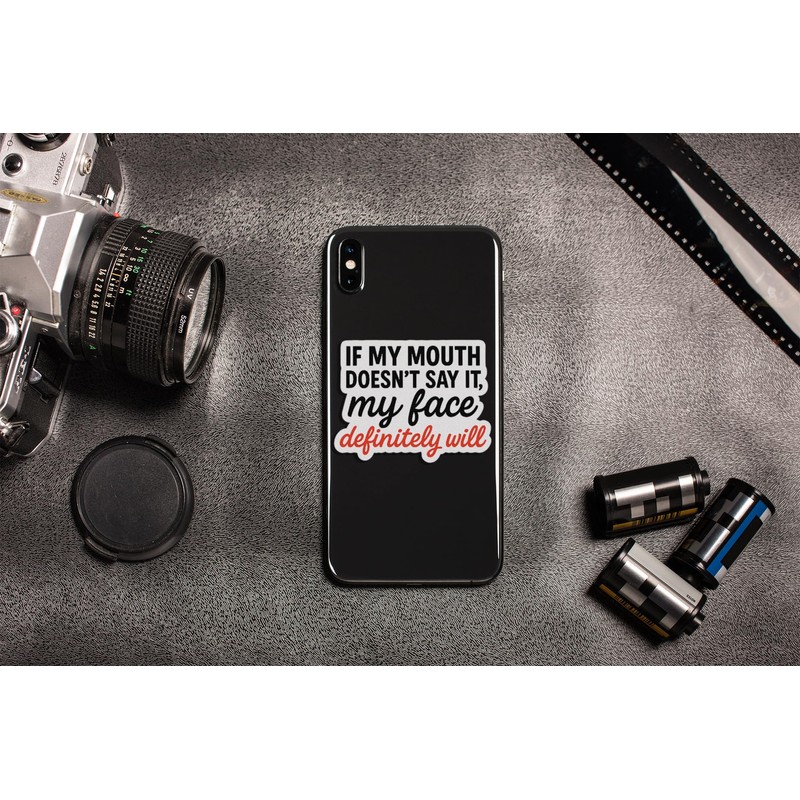 3PCS - Funny Facial Expression Sticker – “If My Mouth Doesn’t Say It” – Waterproof Vinyl Decal for Laptop, Journal, Water Bottle – Sarcastic Humor Gift