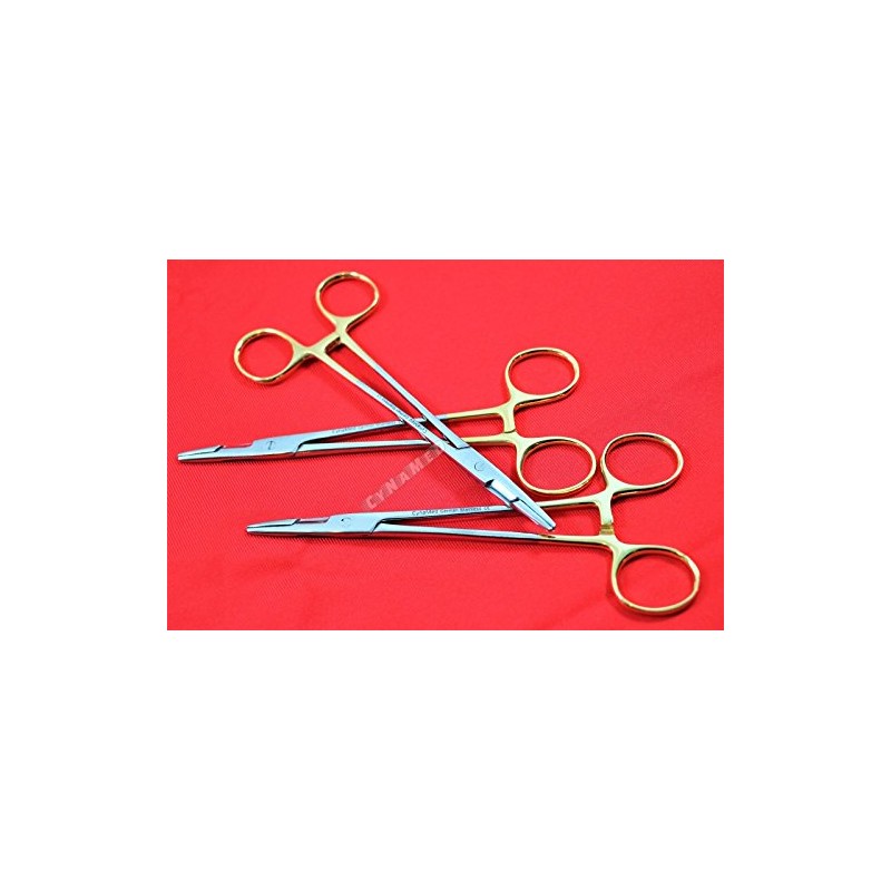 3PCS German Premium Gold Handle Olsen HEGAR Needle Holder Forceps Scissors 5.5 Inches for Plastic Surgery Veterinary Surgical CYNAMED