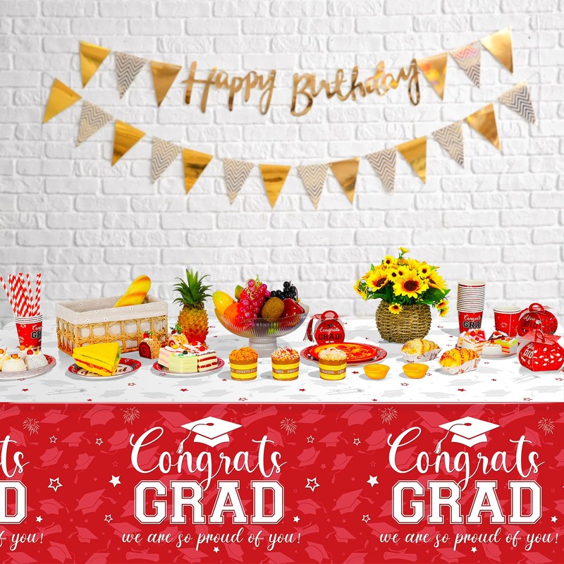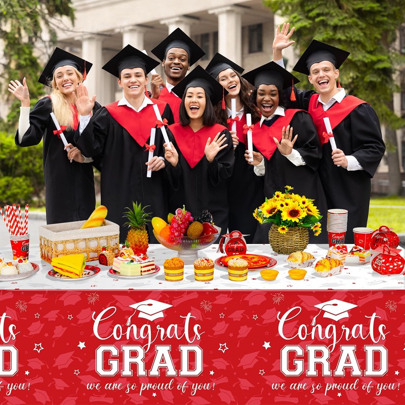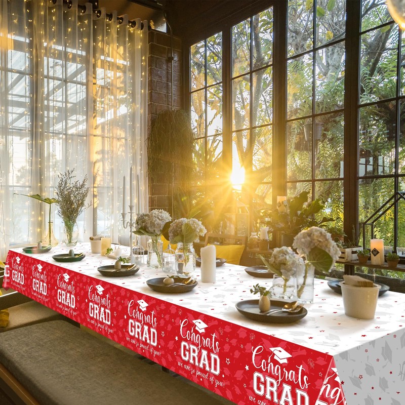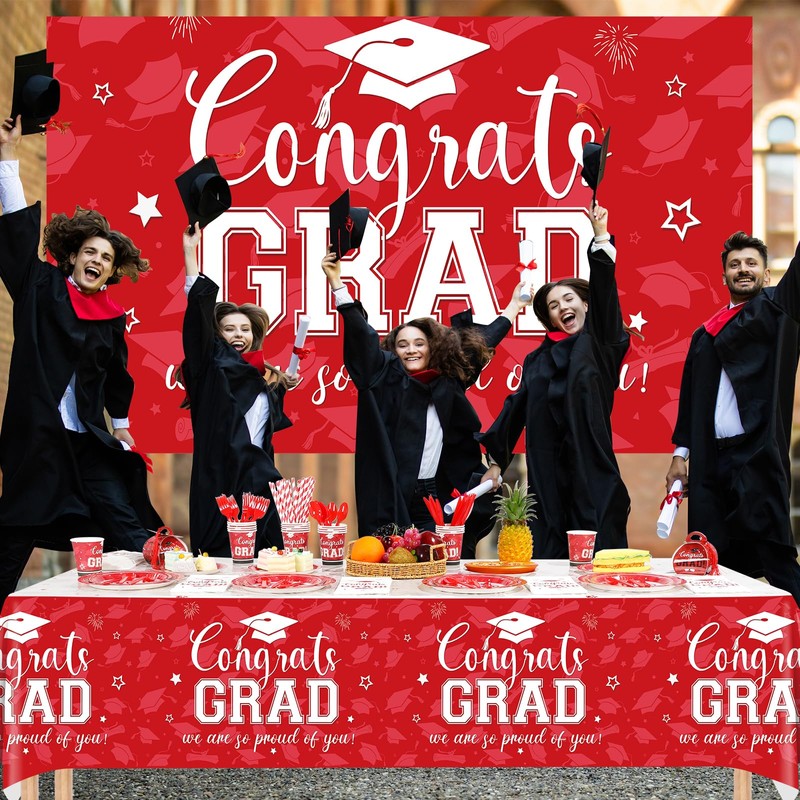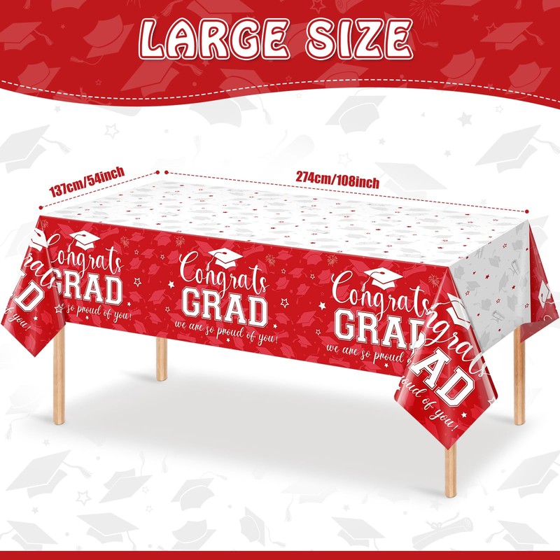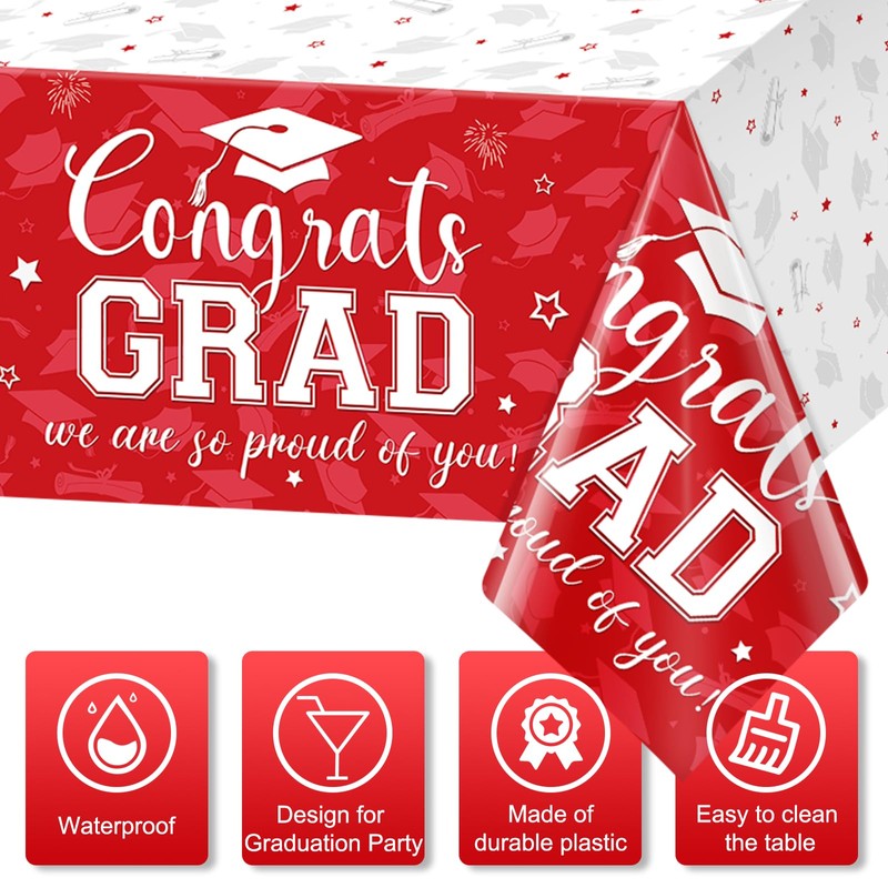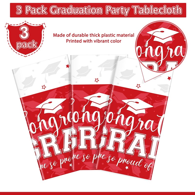 - What you get: you will receive 3 pieces graduation tablecloths, which are designed with a sign of “Congrats Grad” on a background was printed with graduation caps, diplomas,stars, fireworks, great value for class of 2025 graduation party decoration