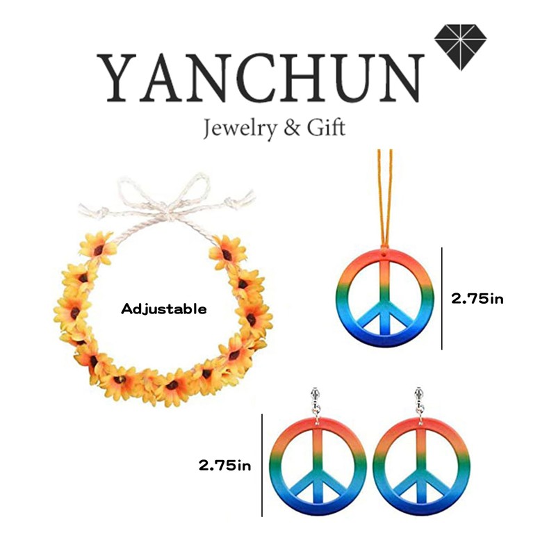 • Peace Sign Necklace:You will get 1 piece peace sign necklace,1 pair of peace sign earrings and 1 piece sunflower headband.Yellow corolla headband, with neatly arranged flowers and leaves to make you look fresh and attractive; Adjustable elastic ribbons fit on most women's and girls' heads.