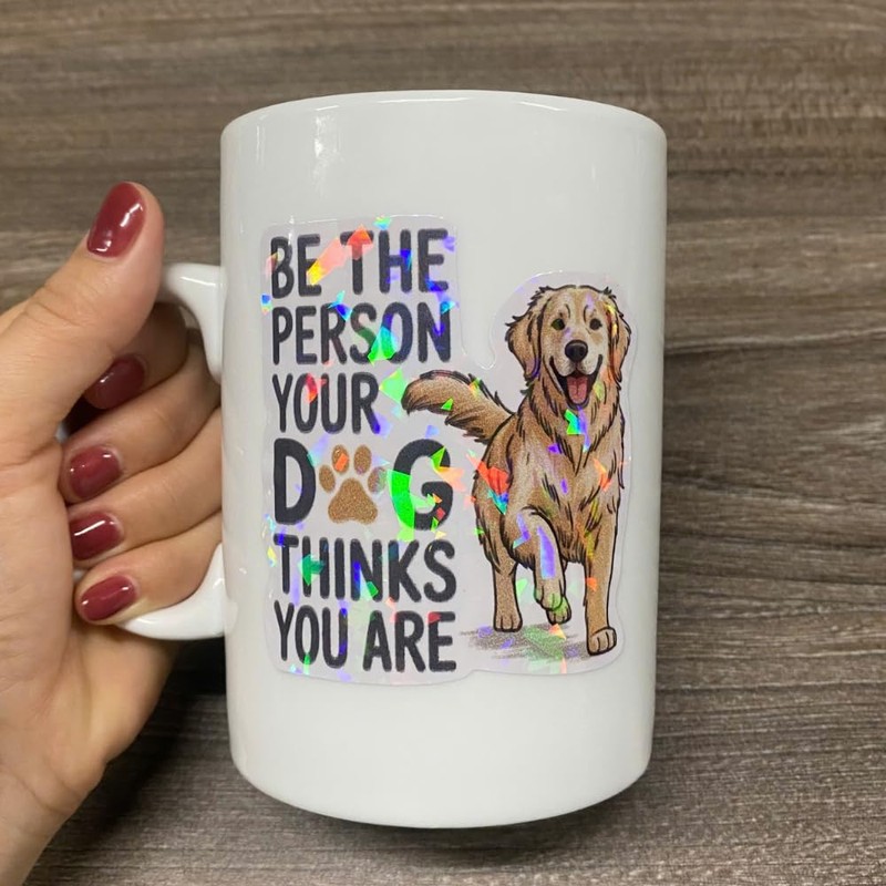 (3Pcs) Holographic Be The Person Your Dog Thinks You are Sticker, Funny Dog Lover Decal for Laptop Water Bottle Journal Gift for Pet Owner and Animal Rescue Fans 3 Inches