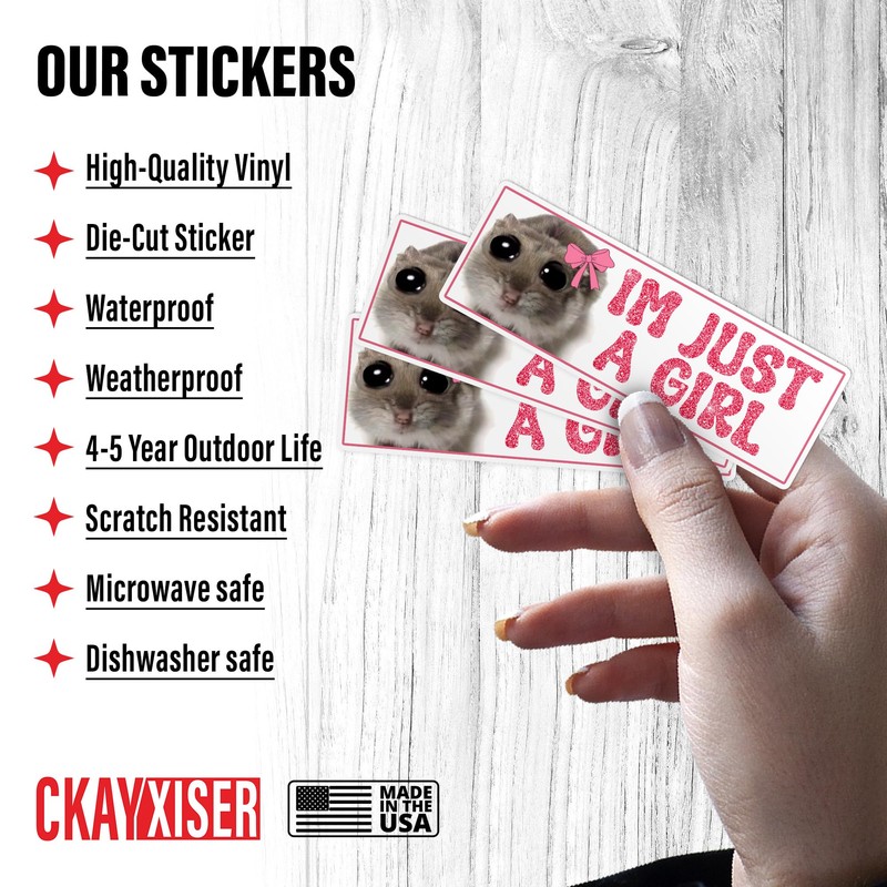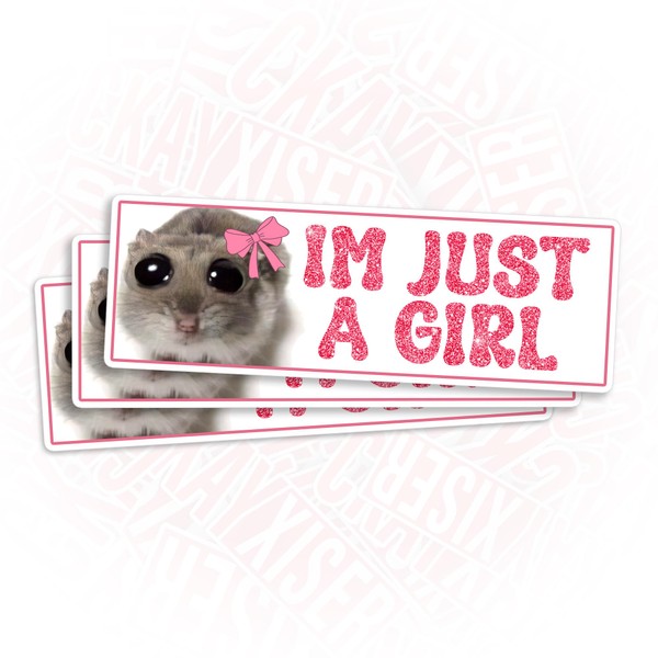 (3Pcs) I'm Just a Girl Sticker Hamster Meme Sad Funny Cute for Car 2" Sticker Waterproof Vinyl Sticker for Laptop, Water Bottle, Tumbler, Accessory Hard Hat Gifts for Her Him 2 Inches
