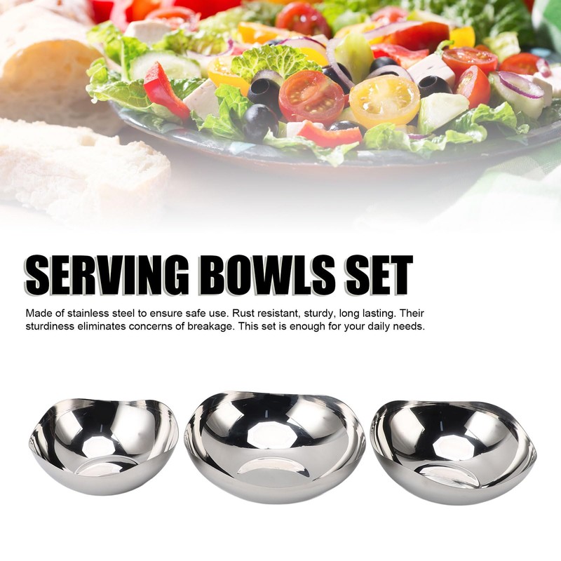 - 3 Pieces Serving Bowls Set: Made of stainless steel to ensure safe use. resistant, sturdy, long lasting. Their sturdiness eliminates concerns of breakage. This set is enough for your daily needs.
