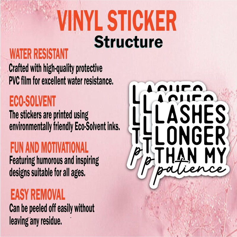 (3Pcs) Lashes Longer Than My Patience Stickers Quotes Funny Stickers Decal Waterproof Vinyl Stickers Adult for Laptop Kindle Car Tumbler Water Bottle Mug Phone Notebook Helmet Size 3”x2.7”