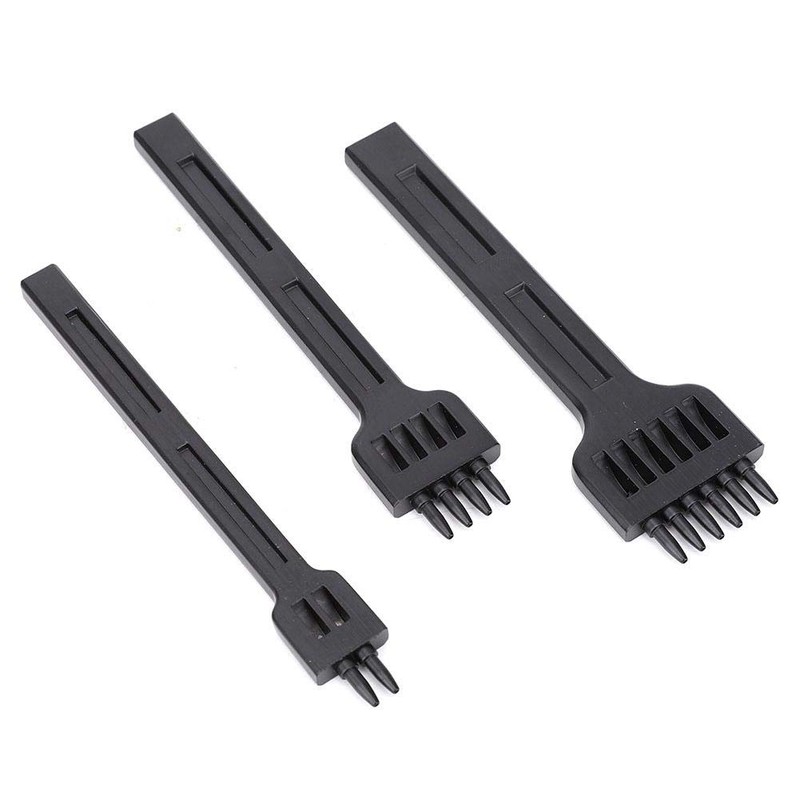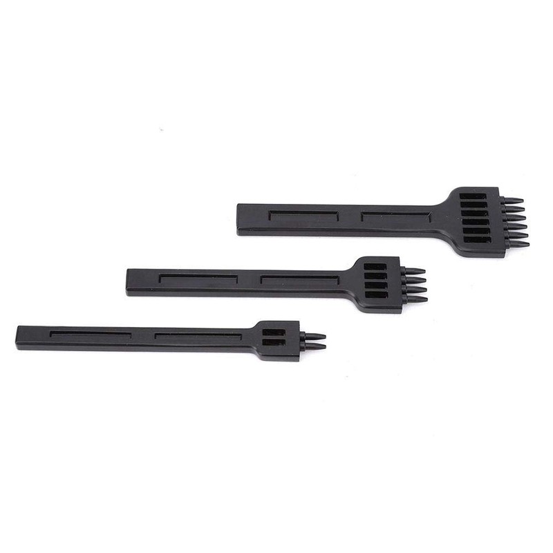 3PCS Leather Prong Punch, High Carbon Steel Prong Row Hole Puncher Leather Stitching Tool 4mm 2/4/6 Holes for Leather Craft(Black 4mm)