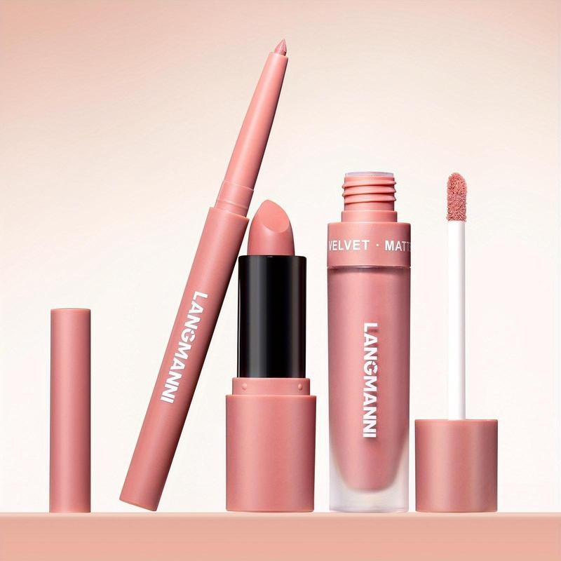 3PCS lipstick set lipstick lip gloss lip liner pink red skin color girl INS fashionable cheap girls cosmetics natural non-fading natural long-lasting Glossy Makeup Soft #01:_#03