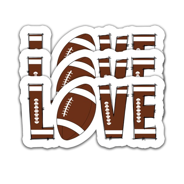 (3PCS) Love Football Stickers – Waterproof Vinyl Decals for Water Bottles, Tumblers, Laptops – Sports Stickers for Football Players and Teams - 3"x1.5".