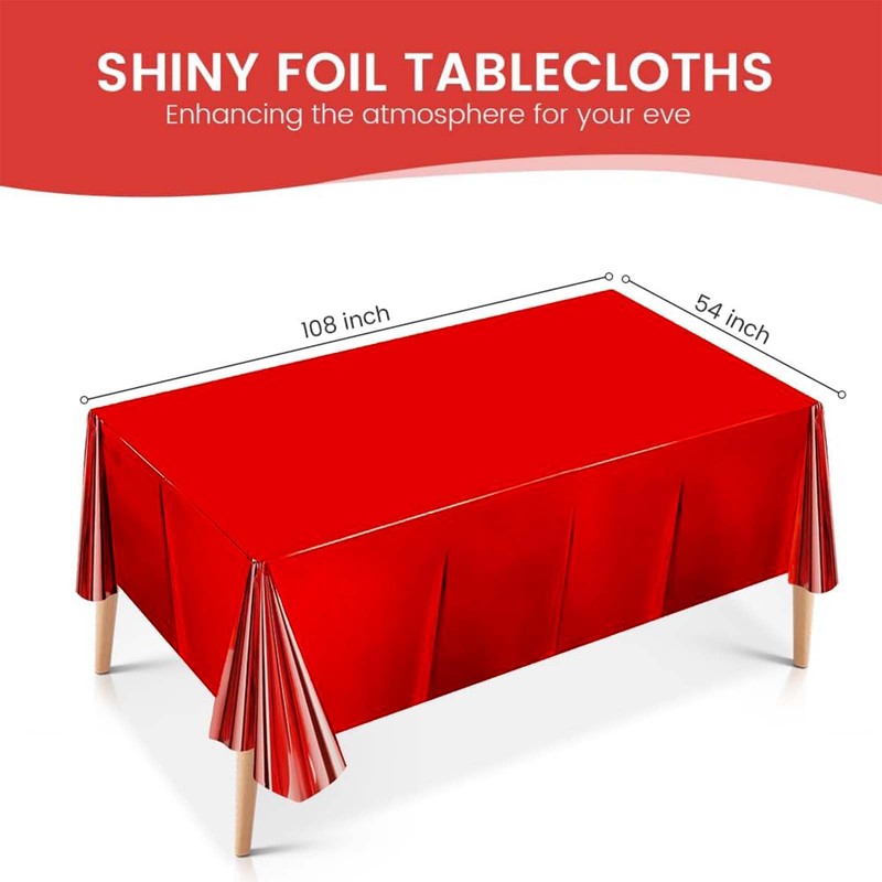 - 🎁【Silver Foil Party Table Cloth】 You will get 3 pieces lager size red foil table cloth,The size of red foil party table cloth is approx 274 x 137 cm,pure and bright colors,you can serve your guests with this red foil table cloth during the party.