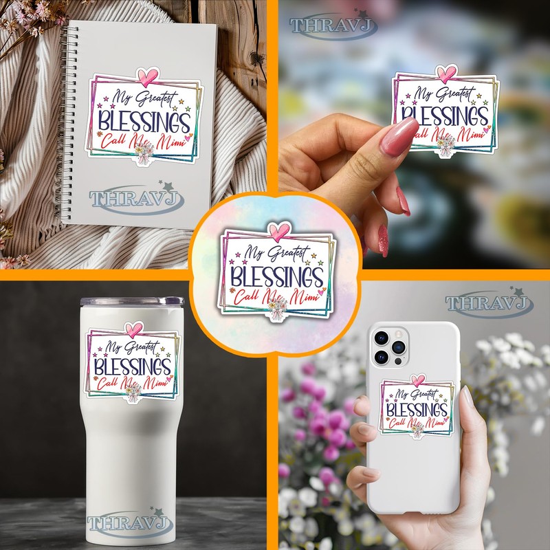 (3Pcs) My Greatest Blessings Call Me Mimi Sticker, Mother's Day 2025 Vinyl Stickers Decorate for Water Bottles, Books, Laptops, Phones, Tumblers, Size 2.6 x 3 Inch