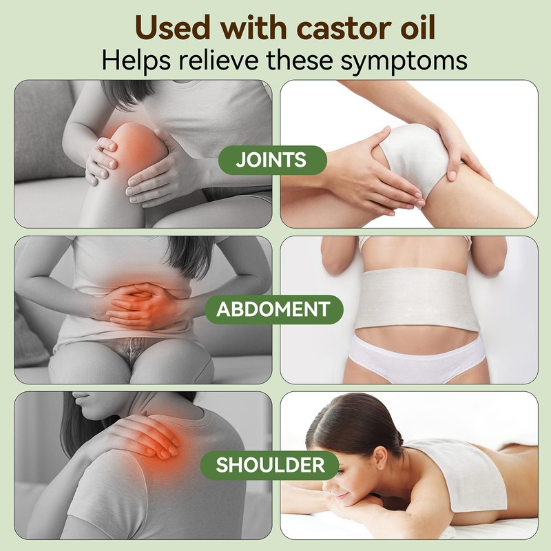 - LEAK-FREE AND MESS-FREE: The integrated TPU layer blocks oil seepage, keeping clothes and bedding surfaces clean. Simply apply castor oil, place the cloth on your target area, and secure with plastic wrap or a castor oil pack wrap