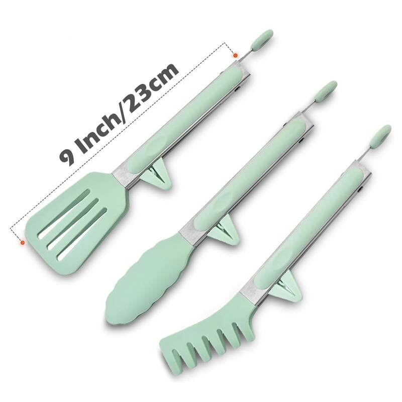 3PCS Pinzas de Cocina de Acero Inoxidable, 23cm Pinzas Barbacoa con Puntas de Silicona, Pinzas Antiadherentes para Cocina, Hornear, Barbacoa, Alta Resistencia al Calor, Verde