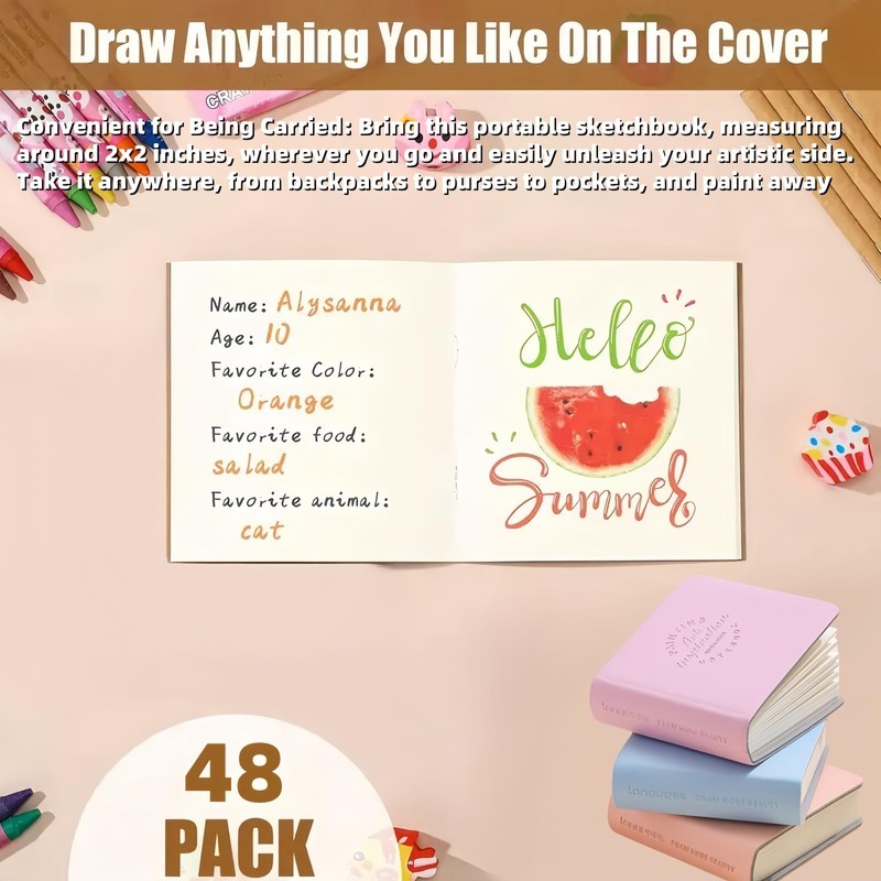 - SUITABLE FOR A WIDE RANGE OF PEOPLE:Small sketchbook is suitable for beginners,eager to improve their painting skills through continuous practice;This artist pad is also suitable for professional artists looking for a convenient creation tool;This journaling book will be the perfect choice for you to develop inspiration and sketch practice.This square sketchbook provides you with a different painting experience