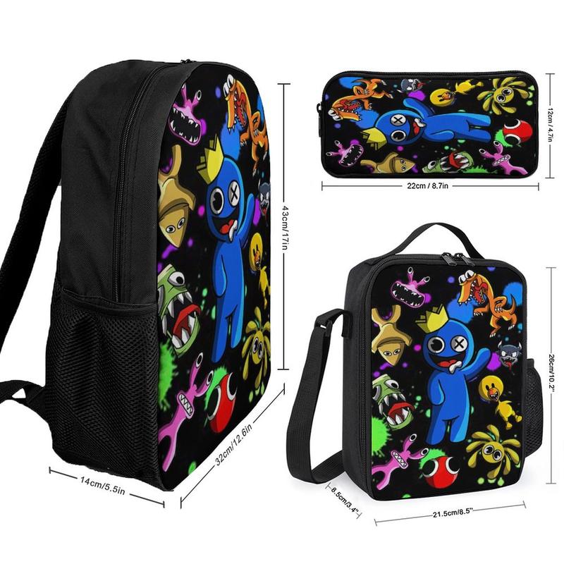 3PCS Rainbow Friends School Backpack For Boys - 3pcs Sports Boys Backpack With Lunch Box And Pencil Case