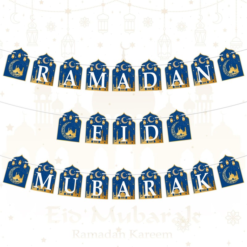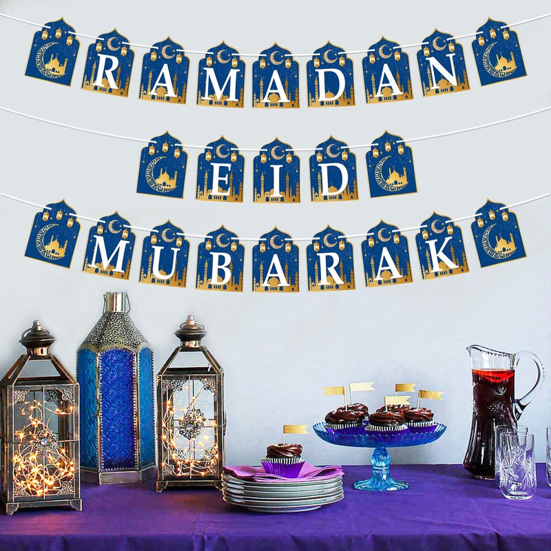 - 【ExquisiteRamadan Theme Design】The Ramadan banners are printed with white letters "RAMANDAN", "EID", "MUBARAK"and Eid element patterns, such as moon, mosque and lantern. The unique color combination of blue and gold will light up your Eid party! It is a must-have Ramadan decorations for home 2025.