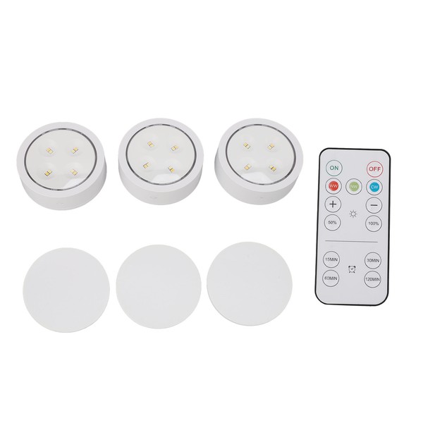 1、Easy Installation: Install with the double sided adhesive tape included, no need for punching. Just open the battery compartment, only 3pcs AA battery are needed to supply power, and the battery is not included. 2、Simple Control: Use the wireless remote control to easily turn on and off lights, adjust brightness to any level, or set an automatic turn off timer of 15min, 30min, 60min, 120min. 3、Smart Adjustment: Gently press to adjust the lighting mode among white light, warm light and natural light. And long press to achieve brightness adjustment from 10% to 100.0% to meet different lighting needs. 4、Wide Application: Suitable for any room in your home, including kitchen, bathroom, pantry, closet, office, garage, and bedroom. 5、Convenient Carry: Small size and light weight, in addition to indoor installation and use, it can also be used as outdoor emergency and travel portable lighting.