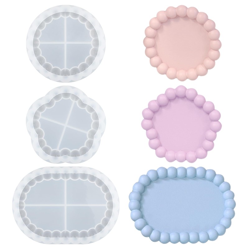3PCS Resin Molds, Epoxy Resin Silicone Molds, Bubble Coaster Molds Including Round Oval Flower Shape for Ash Trays, Flowers Preservation, DIY Create Art, Candles, Insect Specimen, Home Decoration