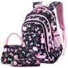 3PCS School Backpack for Girls, Kids Bookbags Set Primary Girls Students (Daypack + Lunch Bag + Pencil Case) (Black)