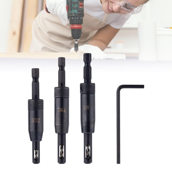 - Product Content: You can get 1 set of 3 pieces self centering drill bits, which suitable for 3 common screw sizes 3/32", 7/64", 1/8". There are a hexagonal wrench included for you to replace drill bits.
