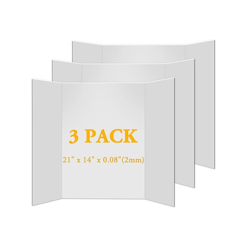 3Pcs Small Trifold Poster Board, 21 x 14 inches White Tri Fold Poster Boards Corrugated Presentation Board Science Fair Display Boards for School Fun Projects, Exhibitions and Business