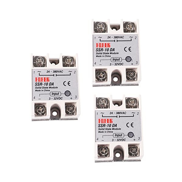 - 【Package Included】3pcs SSR-10DA solid state relay module(10 to 25A radiator cooling, more than 25A must on the radiator and fan cooling).
