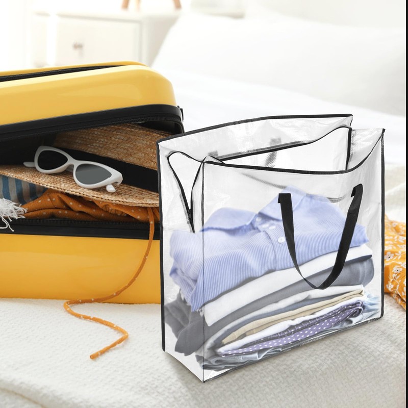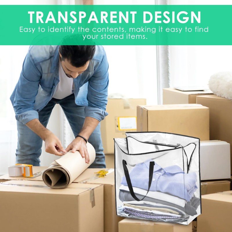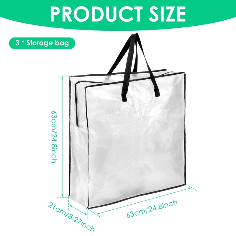 3Pcs Storage Container PP Transparent Storage Bag with Zip Large Capacity Handle Storage Bag Easy to Carry Packing Bag Easy to Organize Access Suitable for Clothes