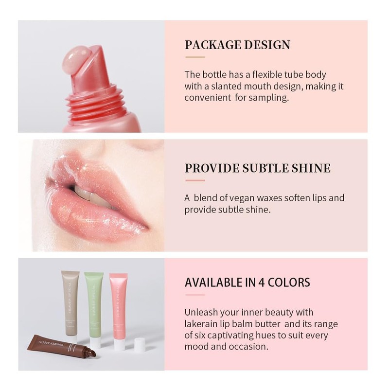 3Pcs Summer Lip Glossy Butter Balm Set, Instant Moisture Sheer Tint, Non-Stic...
