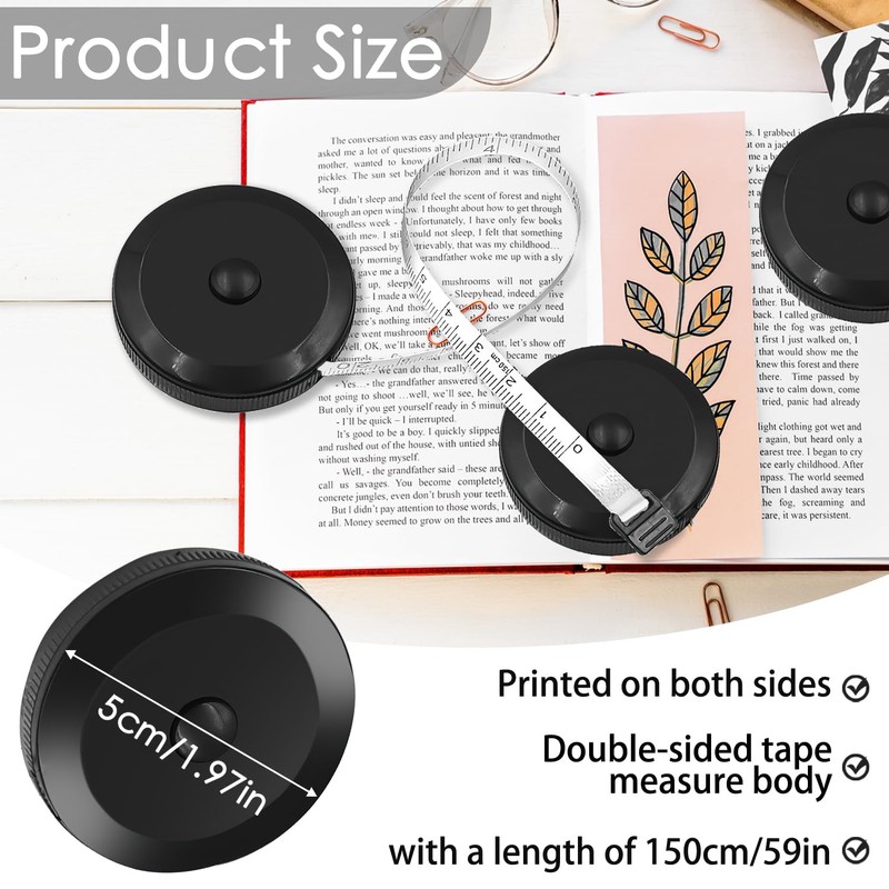 • [Package Included]: The package Included 3 pieces of retractable tape measure sewing, enough for you to use. Each measures 1.5m/60 inch in length. Can easily retract at the push of a round shaped button in the center.
