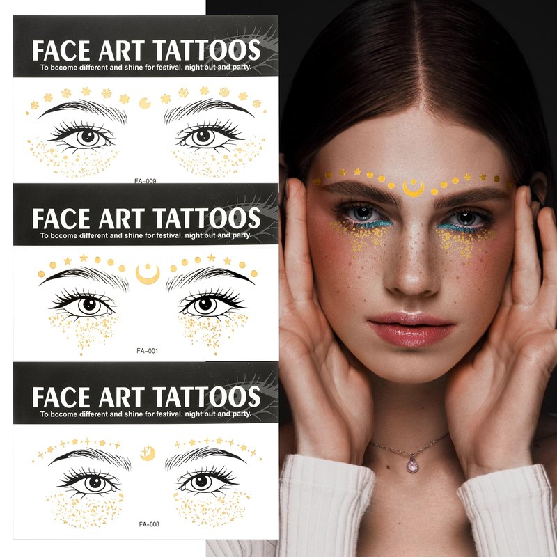 - Mond- Und Sterndesigns:Die temporary tattoos bieten 3 einzigartige motive mit filigranen mond- und sternmustern, die sich individuell zuschneiden lassen, perfekt für gesicht, dekolleté oder arme – schaffen sie glamouröse looks ohne permanent-make-up;