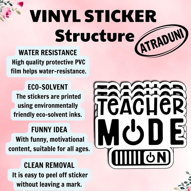(3pcs) Teacher Mode On Sticker Set Funny Teacher Quote Gifts Waterproof Vinyl Decal for Laptop Water Bottle Classroom Appreciation Stickers for Educators School Supplies Size 3" x 2.3"