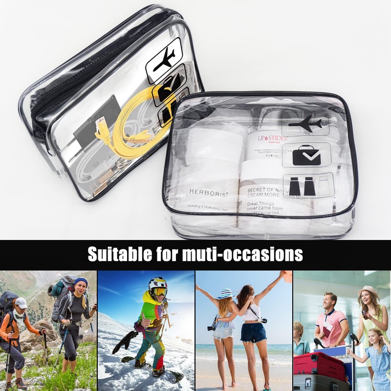 - 【TRANSPARENT THICKENING MATERIAL】: Made of transparent PVC material, environmentally friendly, can quickly view and get items. The sturdy thickness makes the bag more durable and easy to clean and reusable. The extra thick material perfectly protects your expensive makeup and small personal items. ❗For your better experience, please do not contain more than 80% of the TSA bag