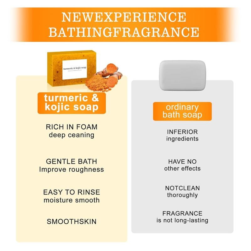 - 3PCS Turmeric Soap Bar,Deep cleansingSoap,Moisturizing Soap For Face &Body,Body wash & Soap For Women& Men jabon curcuma Body CareComfort Skin Care acid kojic glow bar nurture Moisturizer Cleanser Acne Lemon