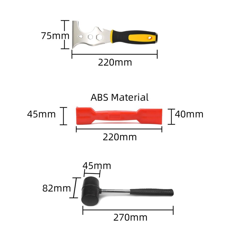 - 【High-Quality Construction】 Constructed from strong steel and eco-friendly rubber, the Window Glazing Tool Kit is designed for durability. The rubber hammer features an optimized large striking surface, making bead installation easier, while the high-tensile steel chisel and shovel deliver dependable strength for a range of glazing tasks.