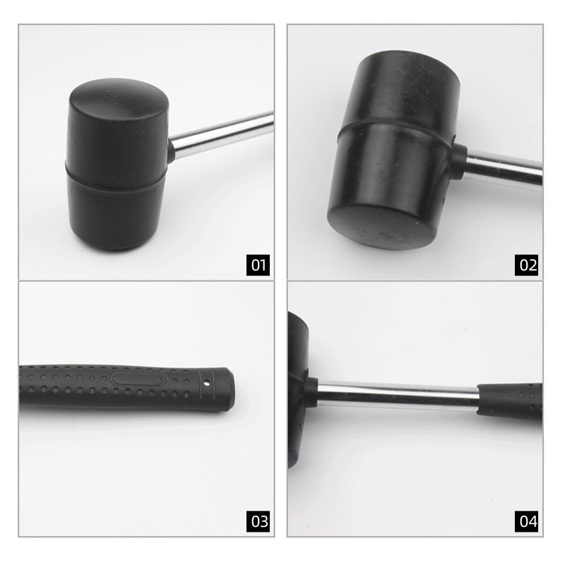 ▸ The robust rubber mallet hammer has chrome-plated zinc heads and a non-marking nylon face, ensuring precise strikes without damage.